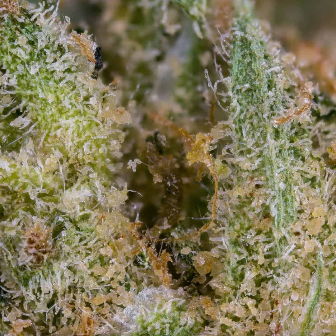 The flowers are entirely green with a hefty dose of orange foxtails. No purple can be found anywhere. Good resin coverage and great humidity as well. Not the prettiest flowers but also not ugly like some people say.