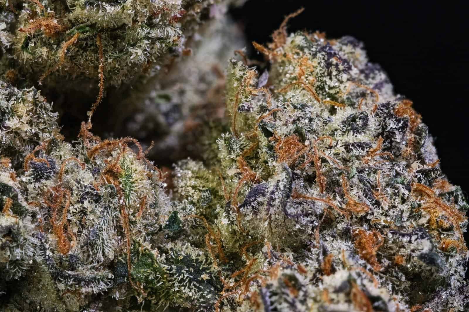 This flower has pretty dense nugs that are sticky to the touch but a bit dry/brittle feeling. Overall still very pretty nugs that are doused in trichomes but I do wish the humidity was a little bit better.
